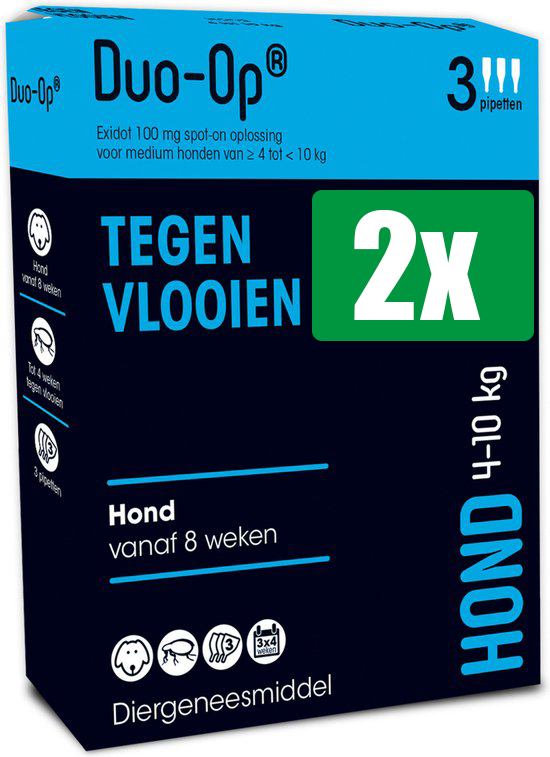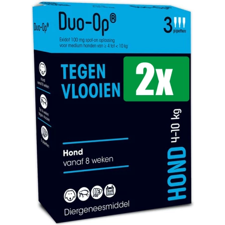 DUO-OP 100mg Hond Tegen Vlooien 4-10 kg 3 pip – 2 stuks
