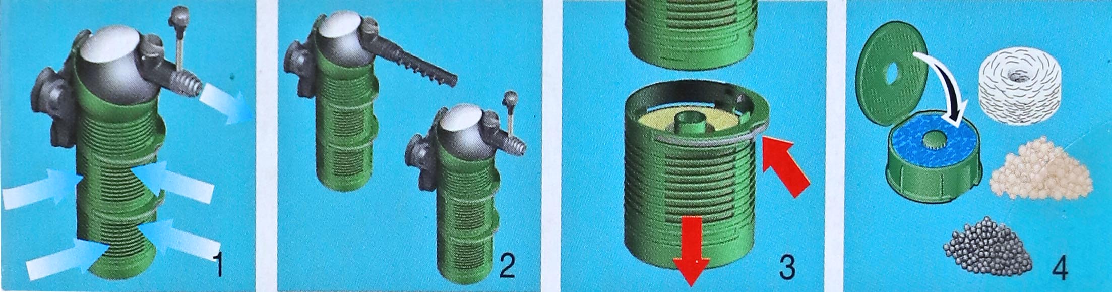 Capaciteit: 150-480 liter per uur. Voor aquaria van 30 tot 60 liter. Filtervolume: 180 cm³.