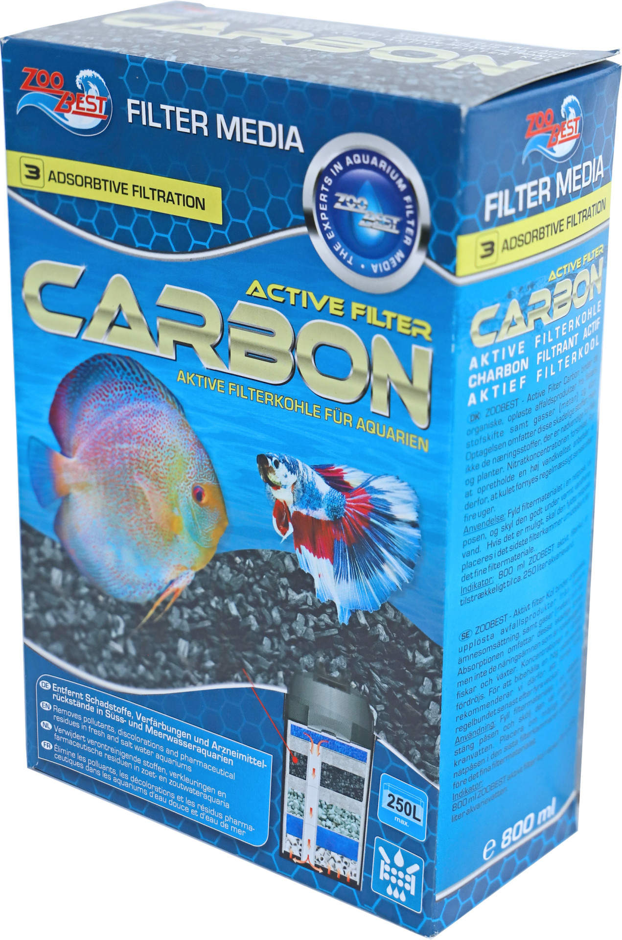 Zoobest filterkool bindt de organische afvalproducten, denk aan de afscheiding van vissen en of het rotten van dood plantmateriaal. Hierdoor ontstaan er onwenselijke stoffen door een chemische reactie in het aquariumwater. De absorbtie werkt alleen maar op de schadelijke stoffen en niet op de nodige zouten voor vissen en planten. De opbouw van nitraat wordt verminderd. Let op: bij gebruik van medicatie dient de filterkool te worden verwijderd. Werkingsduur ongeveer 4 weken. Inhoud: 800 ml.