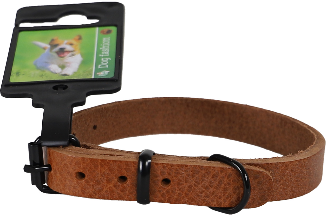 Deze halsband met de afmeting 16mm/40cm in de kleur cognac is geschikt voor een nekomvang van 24 t/m 35cm.