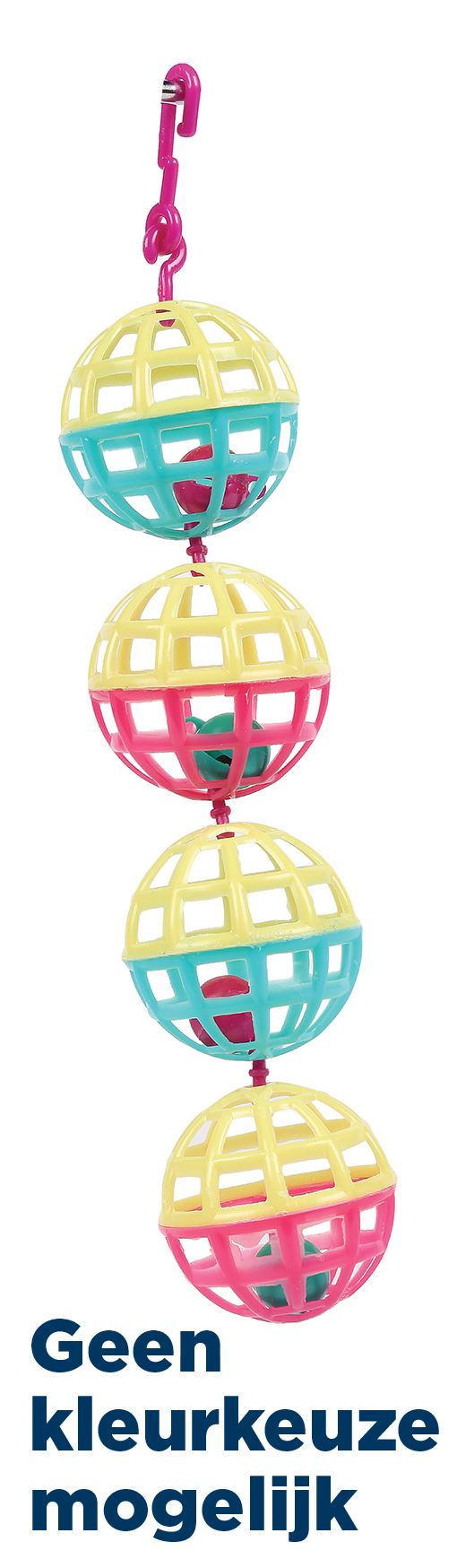 daarin een belletje dat geluid maakt. Jouw vogel kan lekker met het speelgoed