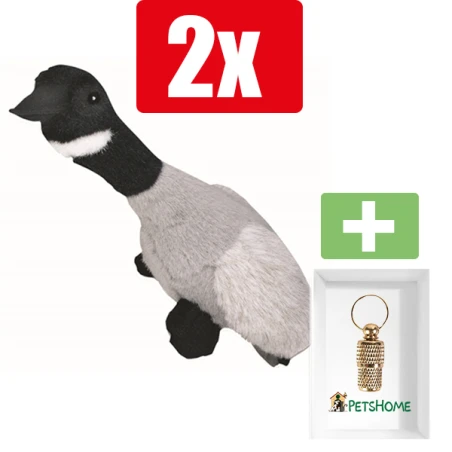 Happy Pet Migrator Pluche Canadese Gans – Hondenspeelgoed – Large 38 cm – 2 Stuks – Inclusief PetsHome Goudkleurige Adreskoker