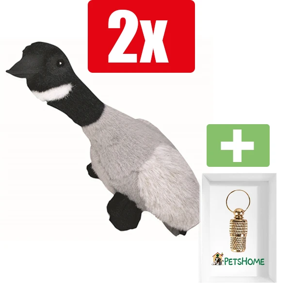 Happy Pet Migrator Pluche Canadese Gans – Hondenspeelgoed – Medium 29 cm – 2 Stuks – Inclusief PetsHome Goudkleurige Adreskoker