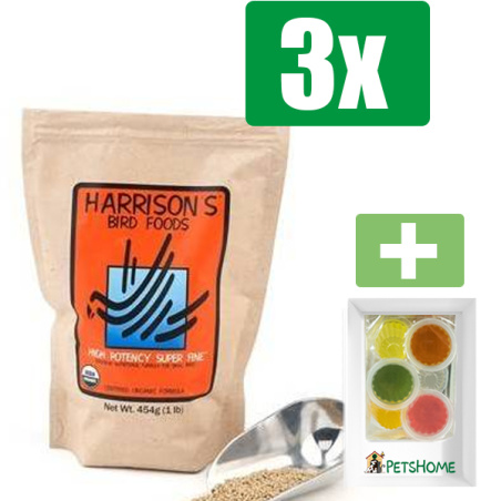 Harrison’s High Potency SUPER Fine – 454 gram – Vogelvoer – 3 Zakken – Inclusief 6 stuks PetsHome Fruitkuipjes