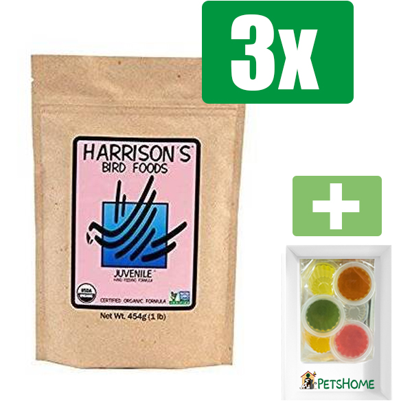 Harrison’s Juvenile Handfeeding – 454 gram – Vogelvoer – 3 Zakken – Inclusief 6 stuks PetsHome Fruitkuipjes