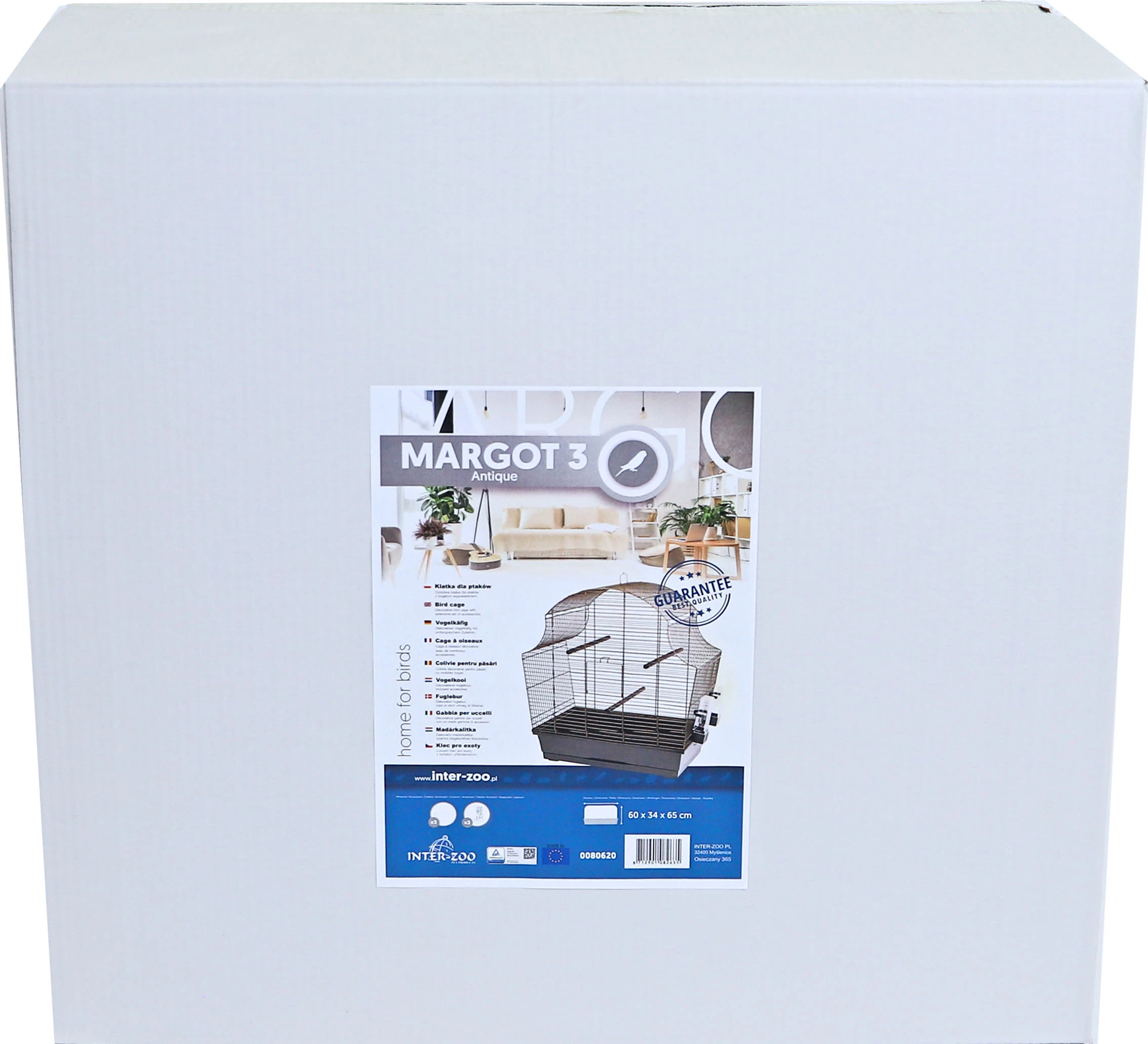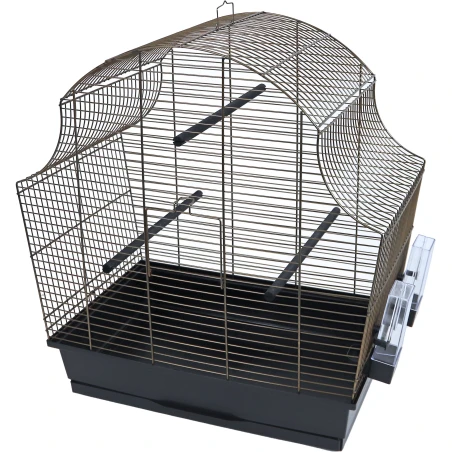 De Interzoo vogelkooi Margot 3 is een kooi die geschikt is voor agapornissen. De Margot 3 is voorzien van 2 agapornide voersilo’s en 3 houten zitstokken en wordt geleverd met een onderbak met lade, wat het schoonmaken erg makkelijk maakt. Wordt geleverd in de antique uitstraling met een zwarte onderbak en zwarte lade. Het traliewerk is bronskleurig.