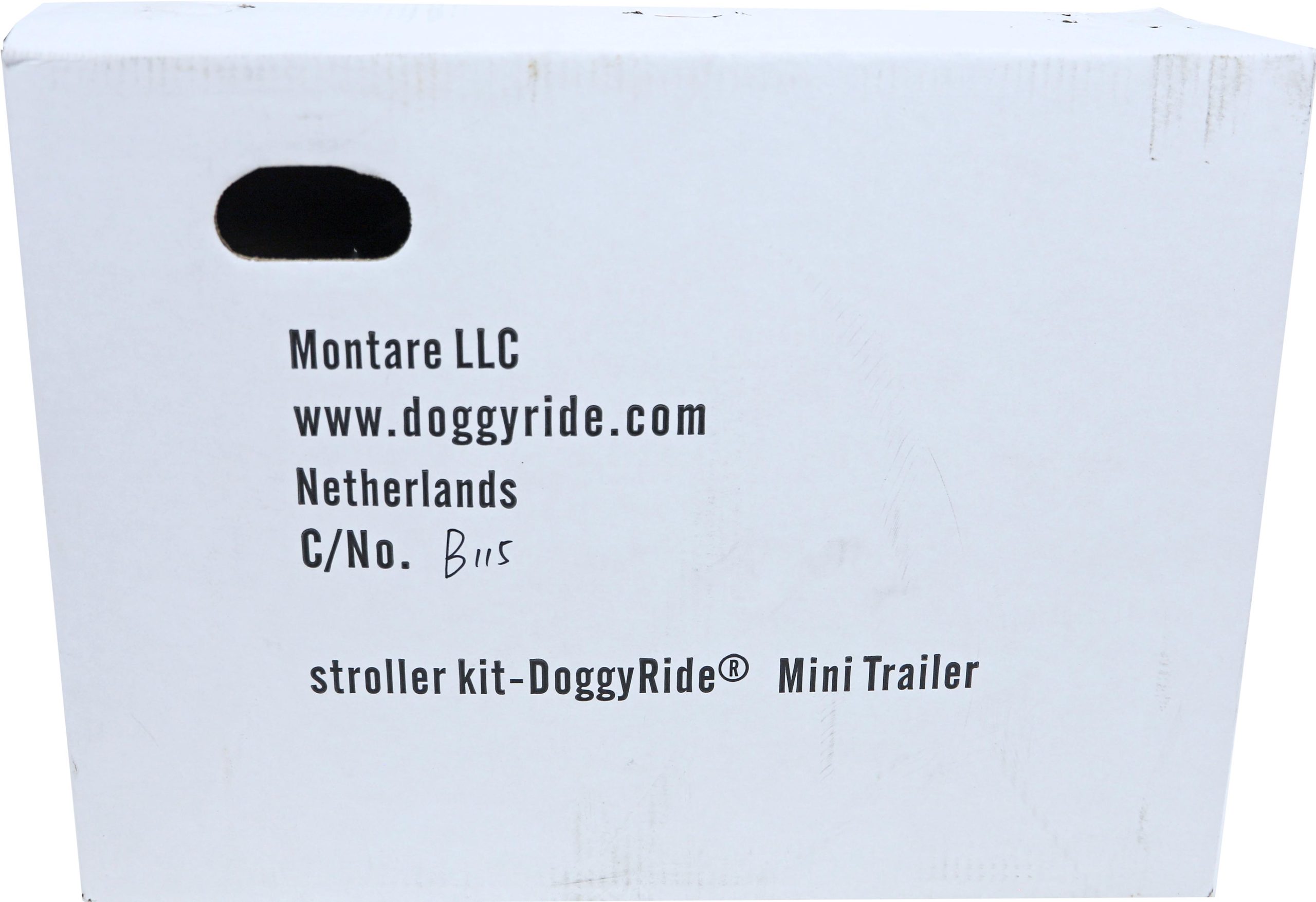 Kit bevat een duwstang, zwenkwiel en parkeerrem om uw fietskar om te zetten naar een wandelbuggy.