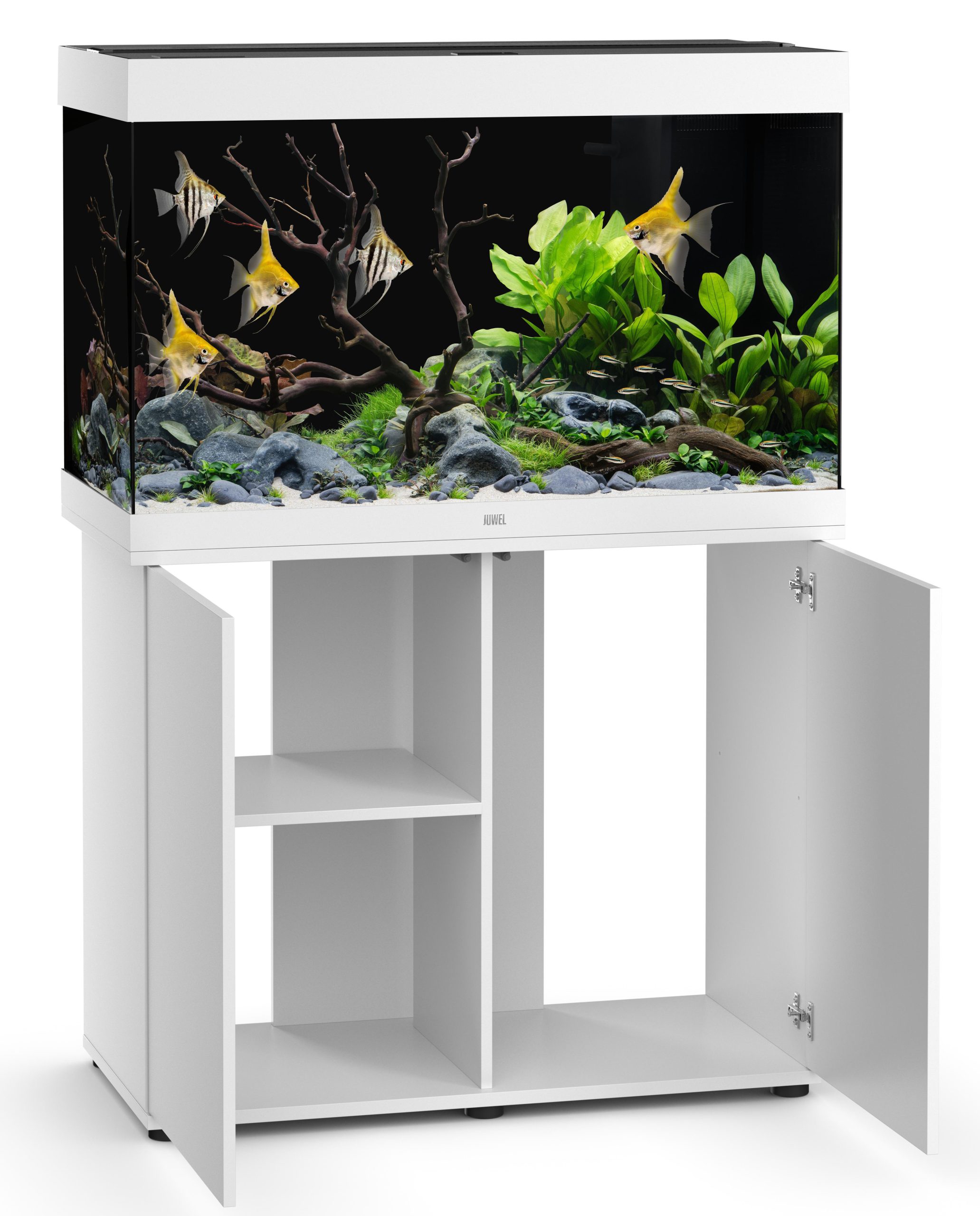 Dankzij het Juwel meubel bouwpakket SBX RIO 290 staat uw Rio 290 aquarium volledig stabiel op vaste grond. Ook visueel zijn die twee het perfecte duo, want de onderkast is in de kleuren van het aquarium verkrijgbaar. De zeer eenvoudige installatie en de royale opbergruimte, bijvoorbeeld voor de toebehoren, laten in pragmatisch opzicht ook niets te wensen over. Dan rest u slechts nog één ding: dagelijks gelukkig zijn over uw mooie woonaccessoires! Verkrijgbaar in de kleuren: zwart, grijs, licht eiken en wit. Afmetingen: 101x51x80cm