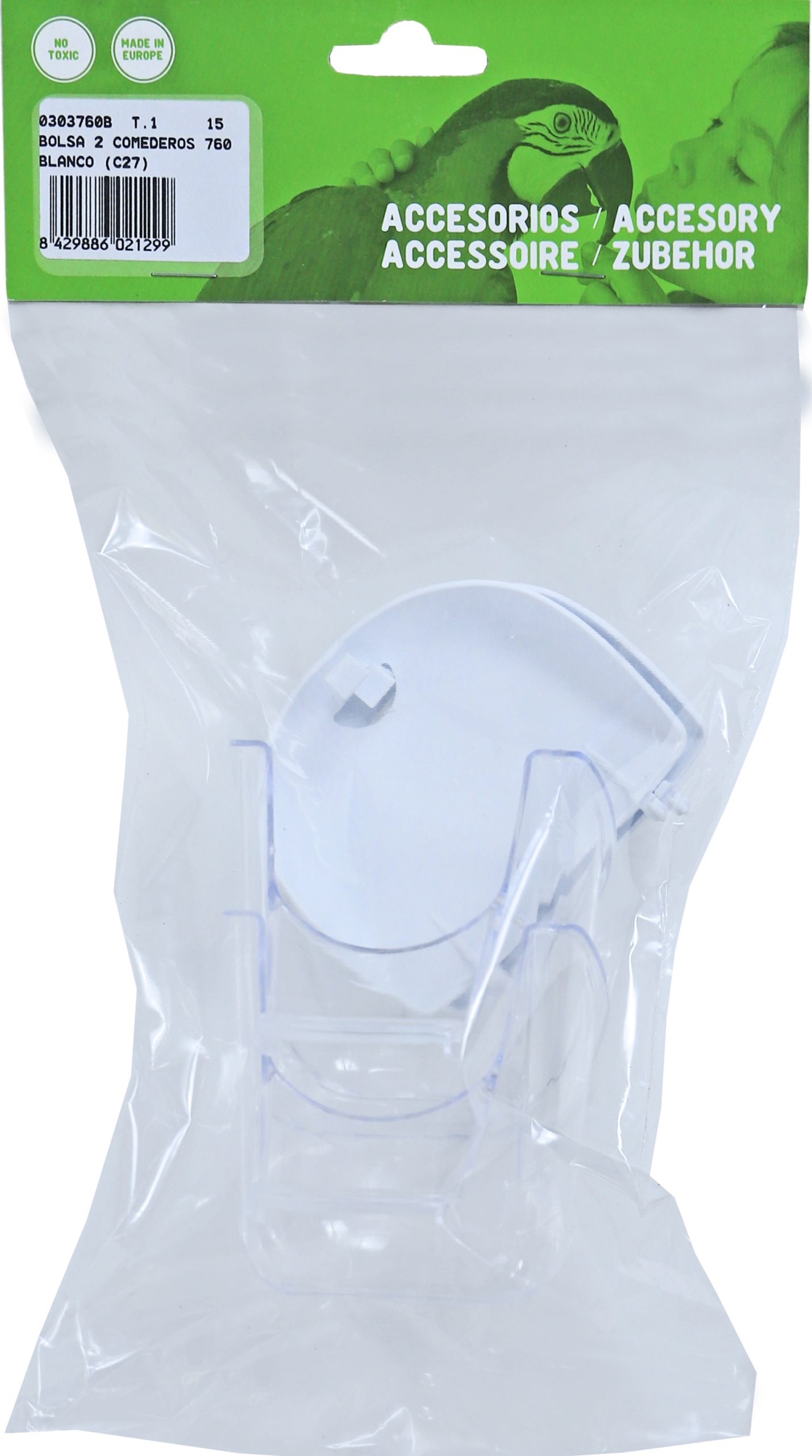 Voltregá pak à 2 kapbakje transparant met wit klepje. Dit Voltregá onderdeel is een hoogwaardig onderdeel voor uw vogelkooi gemaakt met oog op kwaliteit. Het product wordt in Europa (Spanje) geproduceerd, Het product is gemaakt volgens de Europese wetten en regels.