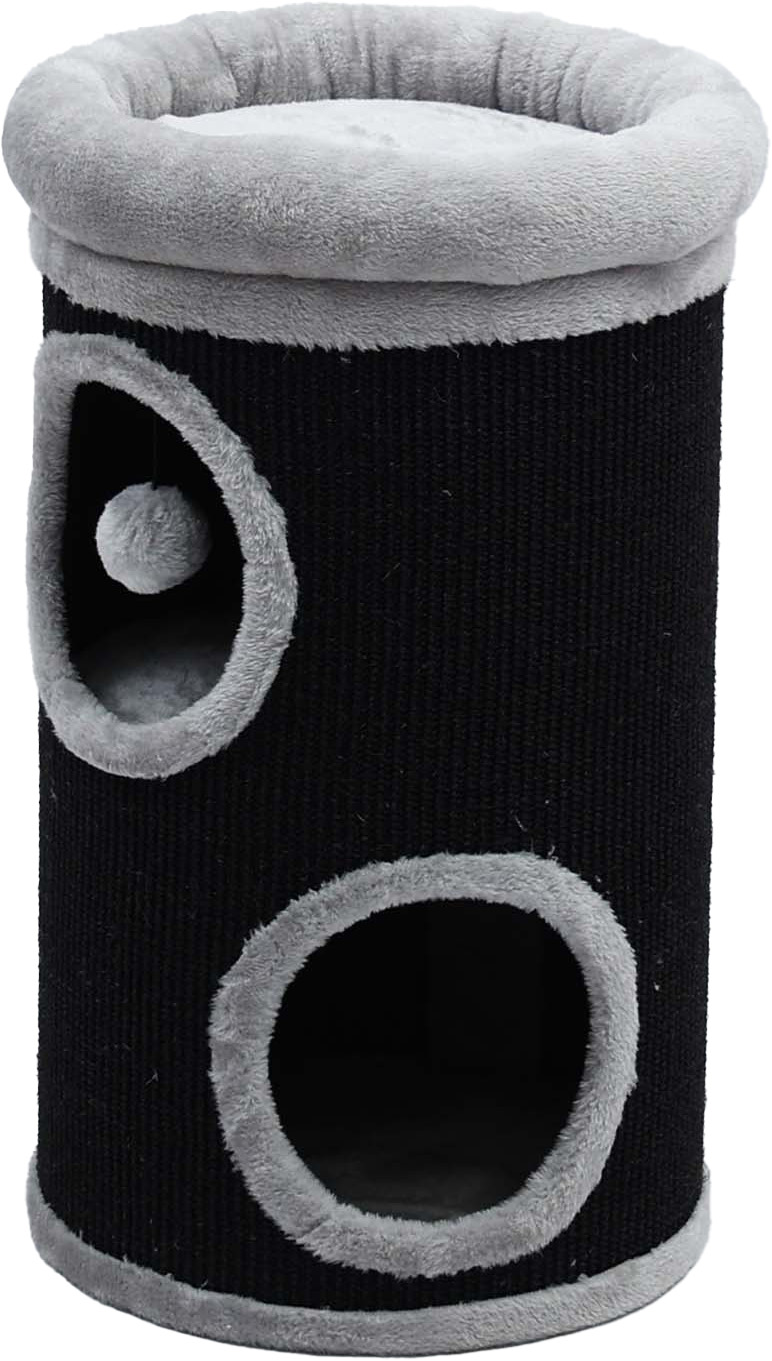 Deze krabton is de ideale combinatie tussen een krabgelegenheid en een slaapplaats. Dit product is namelijk voorzien van maar liefst 3 slaapplekken. 2 gaten waar uw kat zich heerlijk in kan terug trekken voor wat extra privacy en een slaapplaats bovenop de krabton, die ook nog eens voorzien is van een ultrazachte comfortabele pluche rand, die zorgt voor extra comfort tijdens het welverdiende uitrustmoment. De met sisal bekleedde buitenzijde van dit product geeft uw kat voldoende gelegenheid zijn of haar nagels te scherpen om zo zijn natuurlijke krab behoefte te stimuleren. Een van de slaapplaatsen is ook voorzien van een balletje met elastiek, waar uw kat naar hartenlust mee kan spelen. Wordt geleverd in de afmeting 66x38x38cm in de kleuren zwart / grijs.
