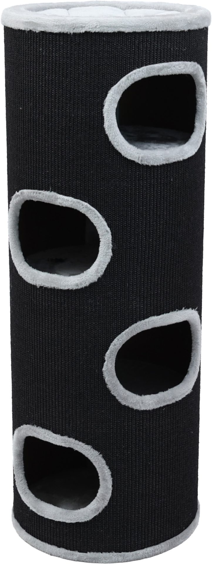 Deze krabton is de ideale combinatie tussen een krabgelegenheid en een slaapplaats. Dit product is namelijk voorzien van maar liefst 5 slaapplekken. 4 gaten waar uw kat zich heerlijk in kan terug trekken voor wat extra privacy en een slaapplaats bovenop de krabton. Deze slaapplaats is een soort hangmat waar uw kat heerlijk kan uitrusten en chillen. Ideaal voor katten die houden van een welverdiende pauze na een speelsessie of jachtsessie. De met sisal bekleedde buitenzijde van dit product geeft uw kat voldoende gelegenheid zijn of haar nagels te scherpen om zo zijn natuurlijke krab behoefte te stimuleren. Wordt geleverd in de afmeting 123x45x45cm in de kleuren zwart / grijs.