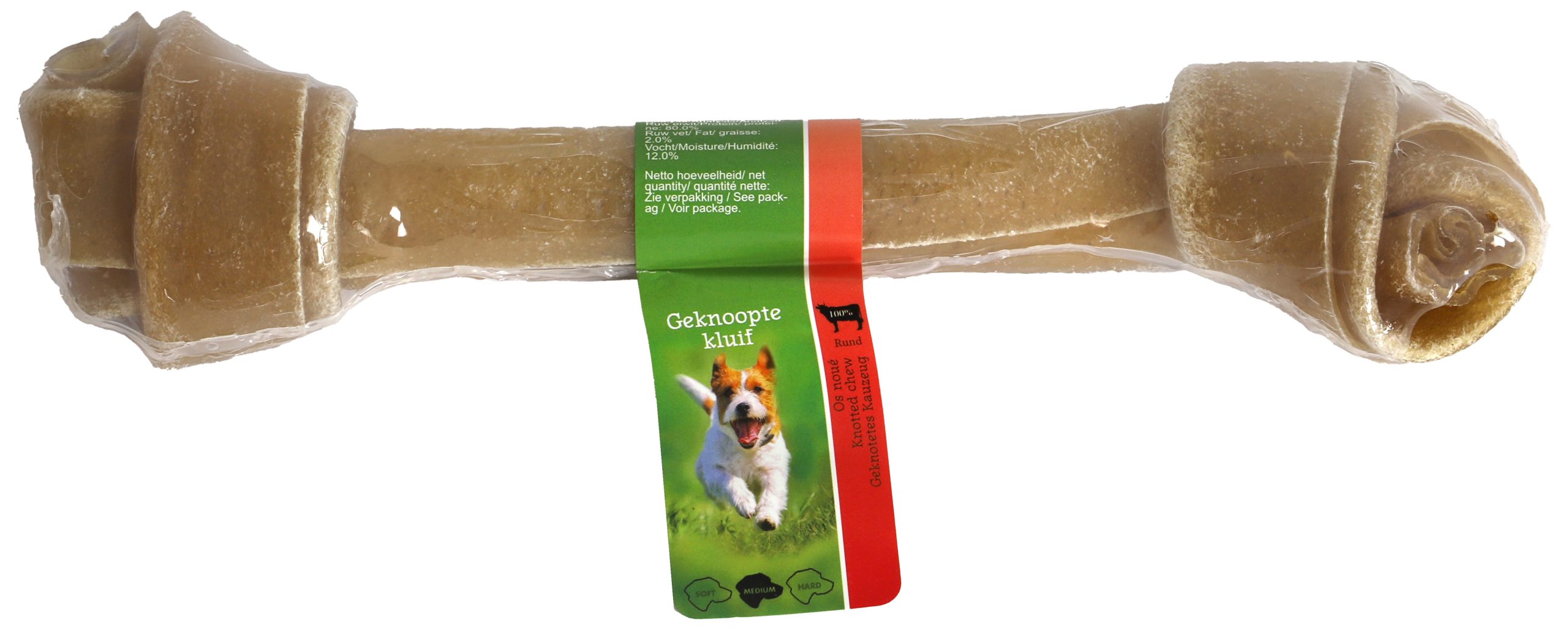 Geknoopte kauwkluif van buffelhuid van de beste Thaise kwaliteit. 100% natuurlijk. Door de de twee knopen aan het uiteinde van de kluif uitermate geschikt voor het gebit en tandvlees. Per stuk verpakt. (Verkrijgbaar in 4 maten)