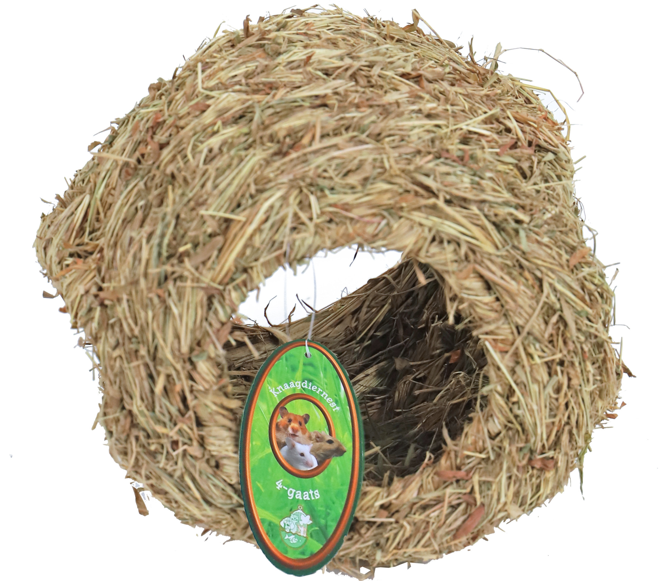 Het knaagdiernest van gras met 4 openingen is de perfecte, natuurlijke schuilplaats voor uw knaagdier. Met een diameter van 10 cm biedt dit nestje een knusse en comfortabele plek waar uw huisdier zich veilig kan terugtrekken. Gemaakt van 100% natuurlijk gras, zorgt het voor een gezonde, milieuvriendelijke leefomgeving. Ideaal voor kleine knaagdieren die van een warme, beschutte plek houden!