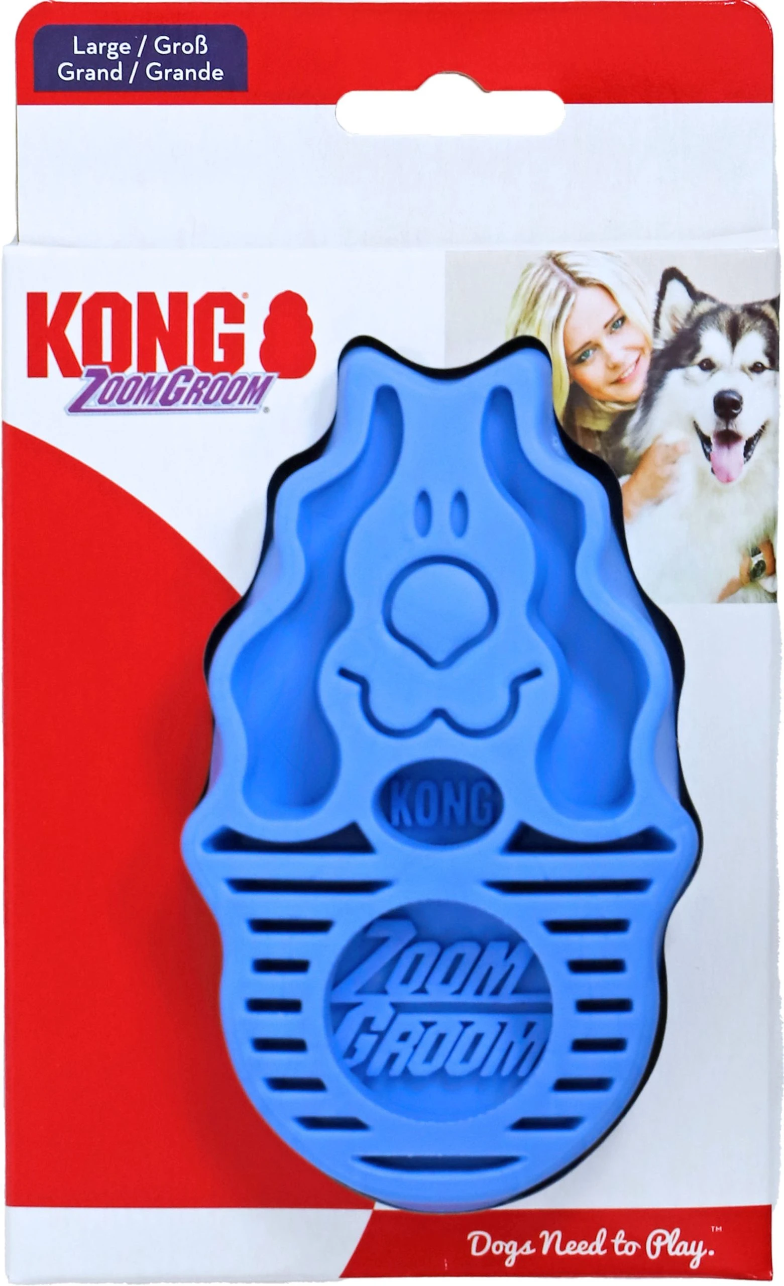 Kong hond Zoom Groom rubber hondenborstel, blauw.