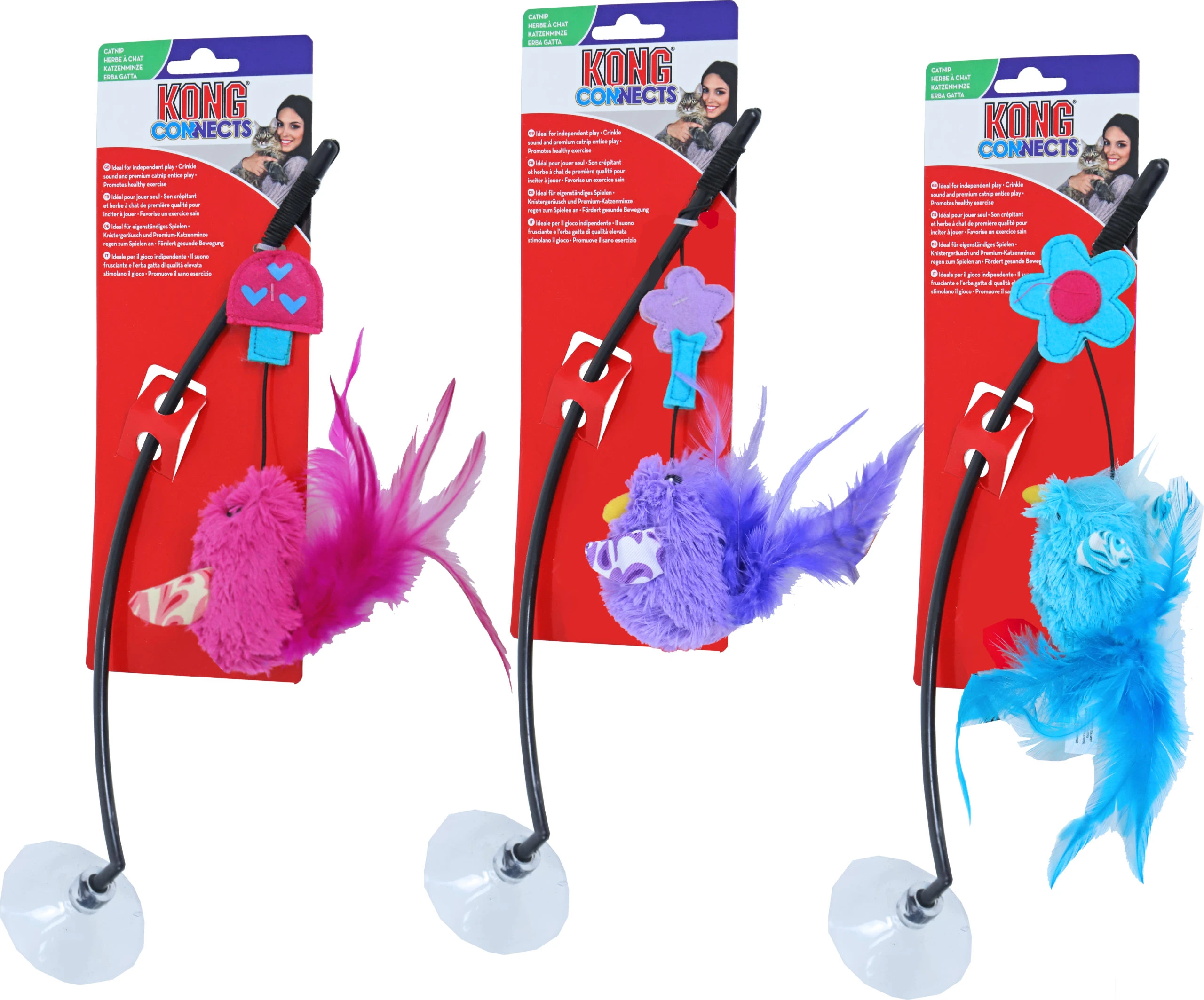 KONG Connects katspeeltjes zijn speciaal ontwikkeld voor hun aanpassingsvermogen waardoor ze zich aan meerdere oppervlakken kunnen hechten; dit zorgt voor een gevarieerde uitdaging voor uw kat, terwijl u de spelervaring naar wens kunt aanpassen. Het buig- en draaivermogen van het Connects lokaasspeeltje hecht zich aan bijna alles, wat voor een actieve speelsessie en boeiend plezier zorgt. Het KONG Premium Noord-Amerikaans kattenkruid en de felle linten maken uw kat blij met een extra beloning.