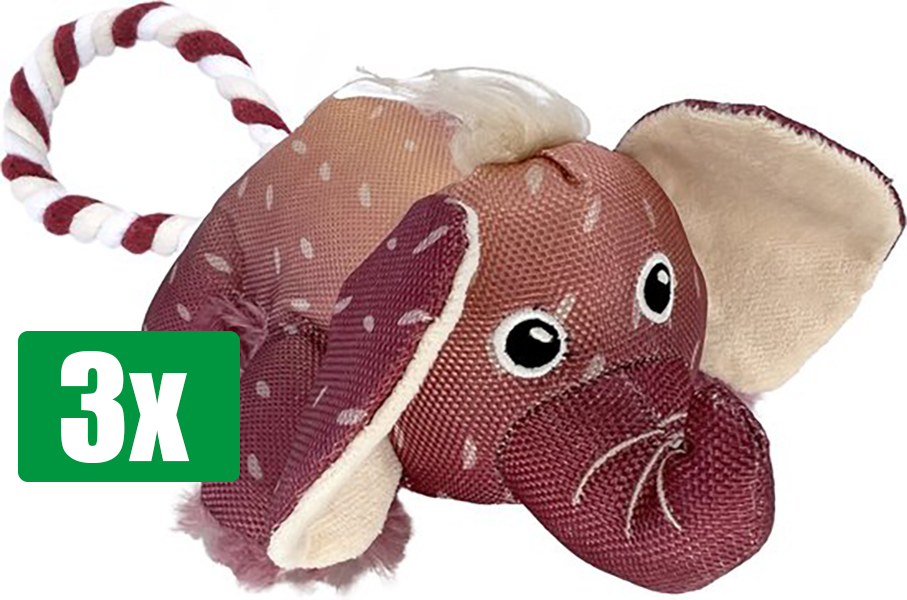 Kong Voordeelverpakking – 3 stuks – Cozie Tuggz Olifant 35,5X20,5X12,5 CM
