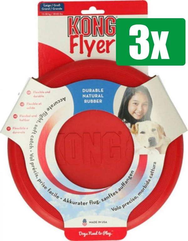 Kong Voordeelverpakking – 3 stuks – Flyer Frisbee Rood 23X23X3 CM