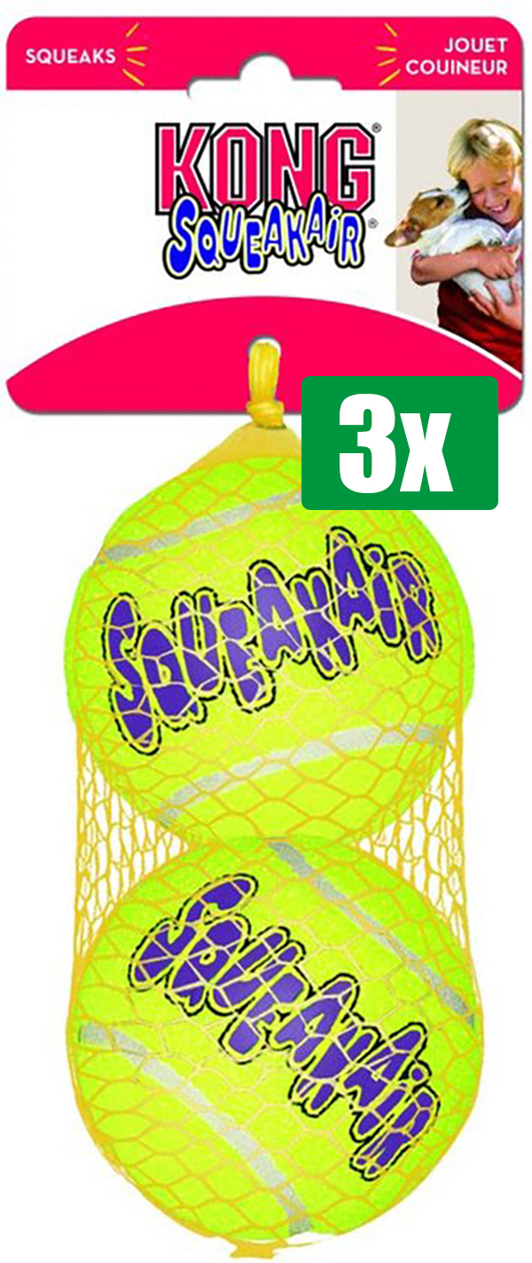 Kong Voordeelverpakking – 3 stuks – Squeakair Tennisbal Geel Met Piep – LARGE 8 CM 2 ST