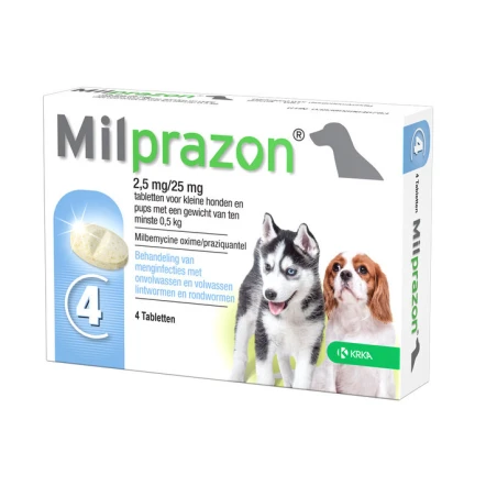 Krka Milprazon Ontwormingstabletten Hond >0,5 Kg 2,5 Mg/25 Mg 4 Tbl