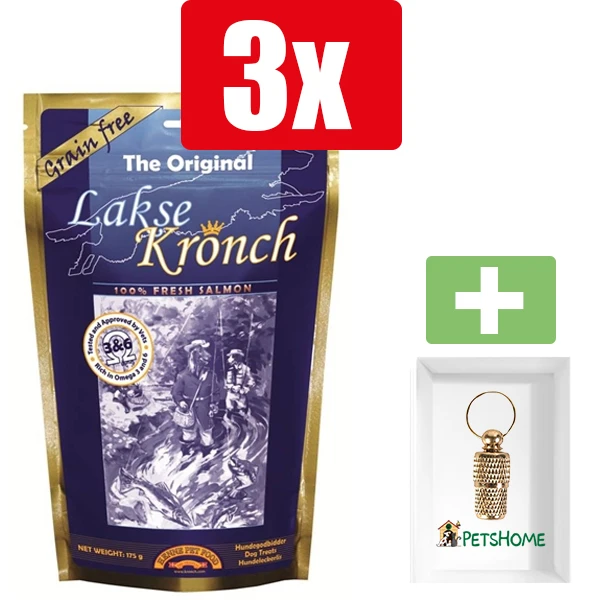 Kronch 100% Zalmsnacks – Hondensnacks – 175 GR – 3 Stuks – Inclusief PetsHome Goudkleurige Adreskoker