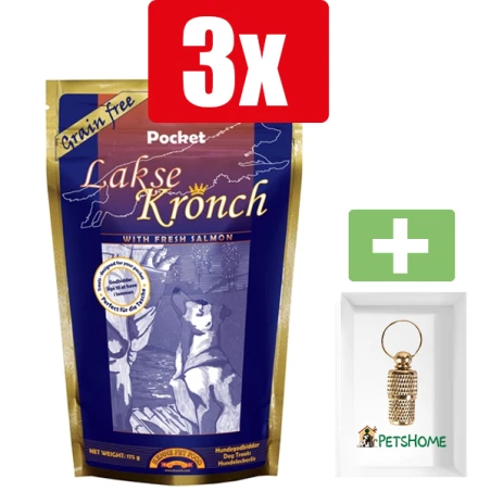 Kronch 76% Zalmsnacks Pockets – Hondensnacks – 175 GR – 3 Stuks – Inclusief PetsHome Goudkleurige Adreskoker