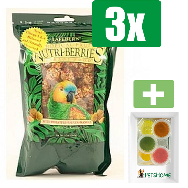 Papegaaien zijn altijd op zoek naar iets extra’s tijdens het eten. Deze vogels hunkeren naar voedsel vol smaak en textuur, en dat is precies wat ze zullen vinden in Tropical Fruit Nutri-Berries met zijn hele zaden en granen gemengd met echte stukjes ananas, papaja, mango, en 26% pellets allemaal gerold in een bes vorm die een papegaai kan vasthouden en genieten van elke hap.