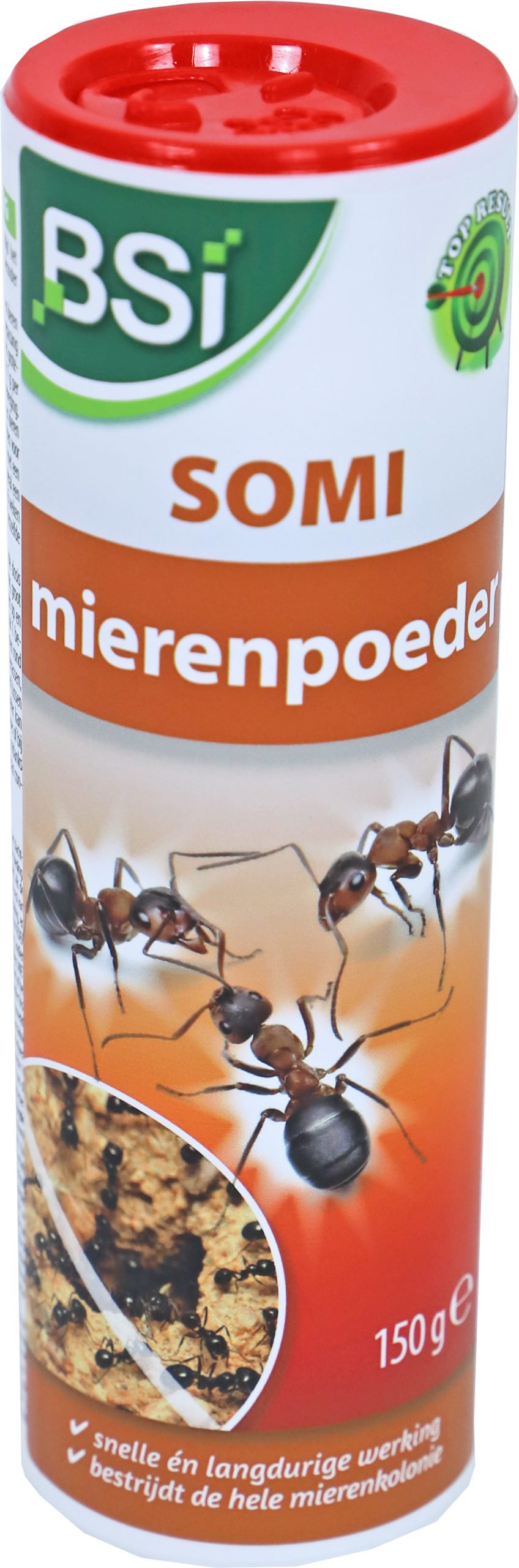 BSI Mierenpoeder Somi, 150 gram – de krachtige oplossing voor het bestrijden van mieren, andere kruipende insecten en spinnen binnenshuis, en ook tegen mierennesten buitenshuis. Dit strooipoeder heeft een uitstekende en snelle werking, die de hele kolonie vernietigt.