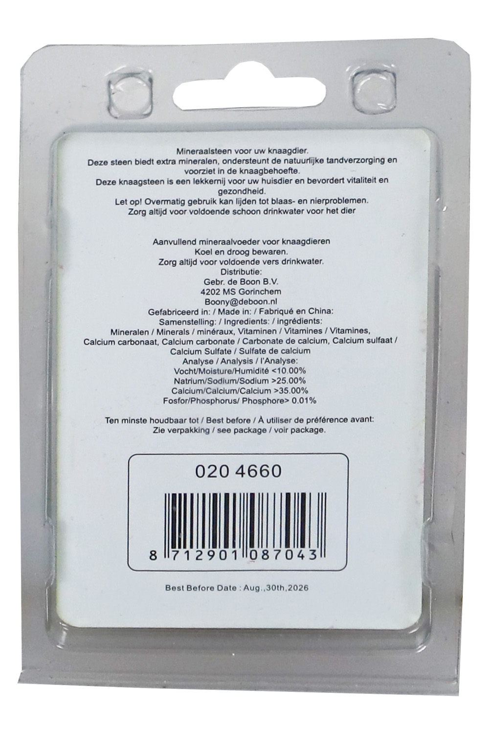 Deze mineraalsteen voor knaagdieren is een onmisbaar element in het verblijf van jouw huisdier! Naast het voldoen aan de knaagbehoefte, bevat deze steen waardevol calcium en essentiële mineralen die je knaagdier nodig heeft voor een optimale gezondheid. Dankzij het handige ophangsysteem aan de achterzijde kan de steen eenvoudig in vrijwel elk verblijf worden geplaatst. Bovendien wordt hij geleverd in een leuke, herkenbare aardbeivorm, wat een speelse touch toevoegt aan de leefruimte van je knaagdier. Gebruik de mineraalsteen met mate en zorg altijd voor vers drinkwater, zodat je knaagdier gelukkig en gezond blijft!