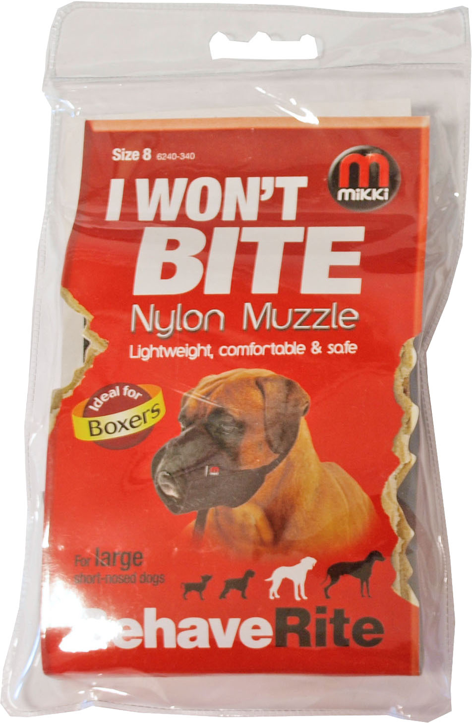 De Mikki Muzzle muilband is geschikt voor honden die overmatig bijtgedrag vertonen of veel achter andere dieren aanrennen. De muilband is gemaakt van soepel materiaal en biedt een mooi alternatief voor de traditionele muilkorf. Hij heeft een verstelbaar bandje dat gemakkelijk te bevestigen is met een kliksluiting. De muilband kan aan de halsband bevestigd worden om te voorkomen dat uw hond de muilband van zijn snuit trekt.
