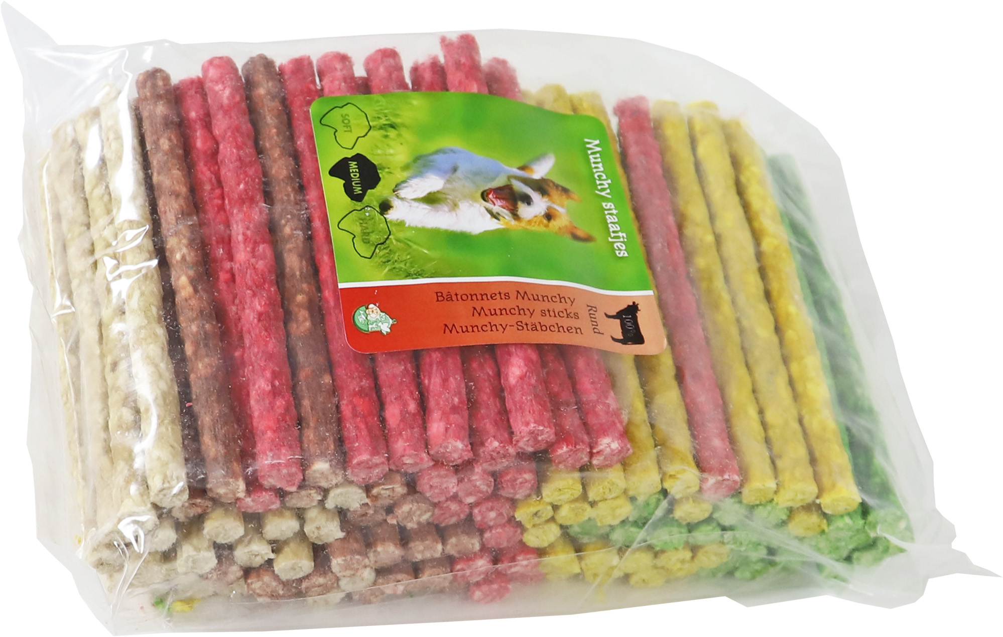Munchy kauwstaaf gemaakt van gemalen runderhuid. Thailand A kwaliteit. 100 kauwstaafjes per verpakking. Een geweldige snack voor uw hond.
