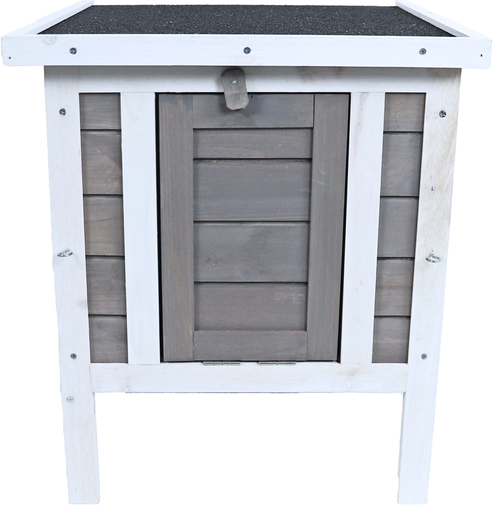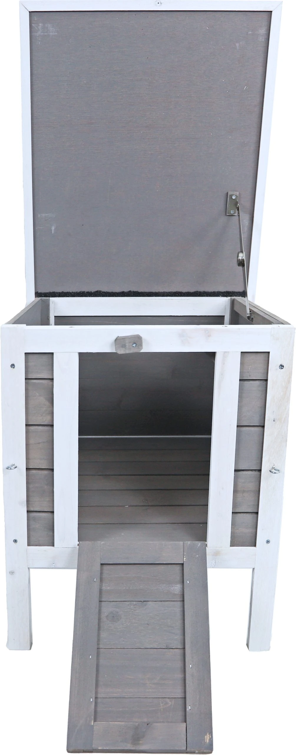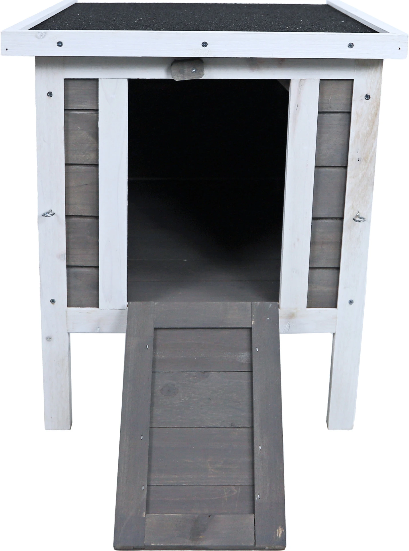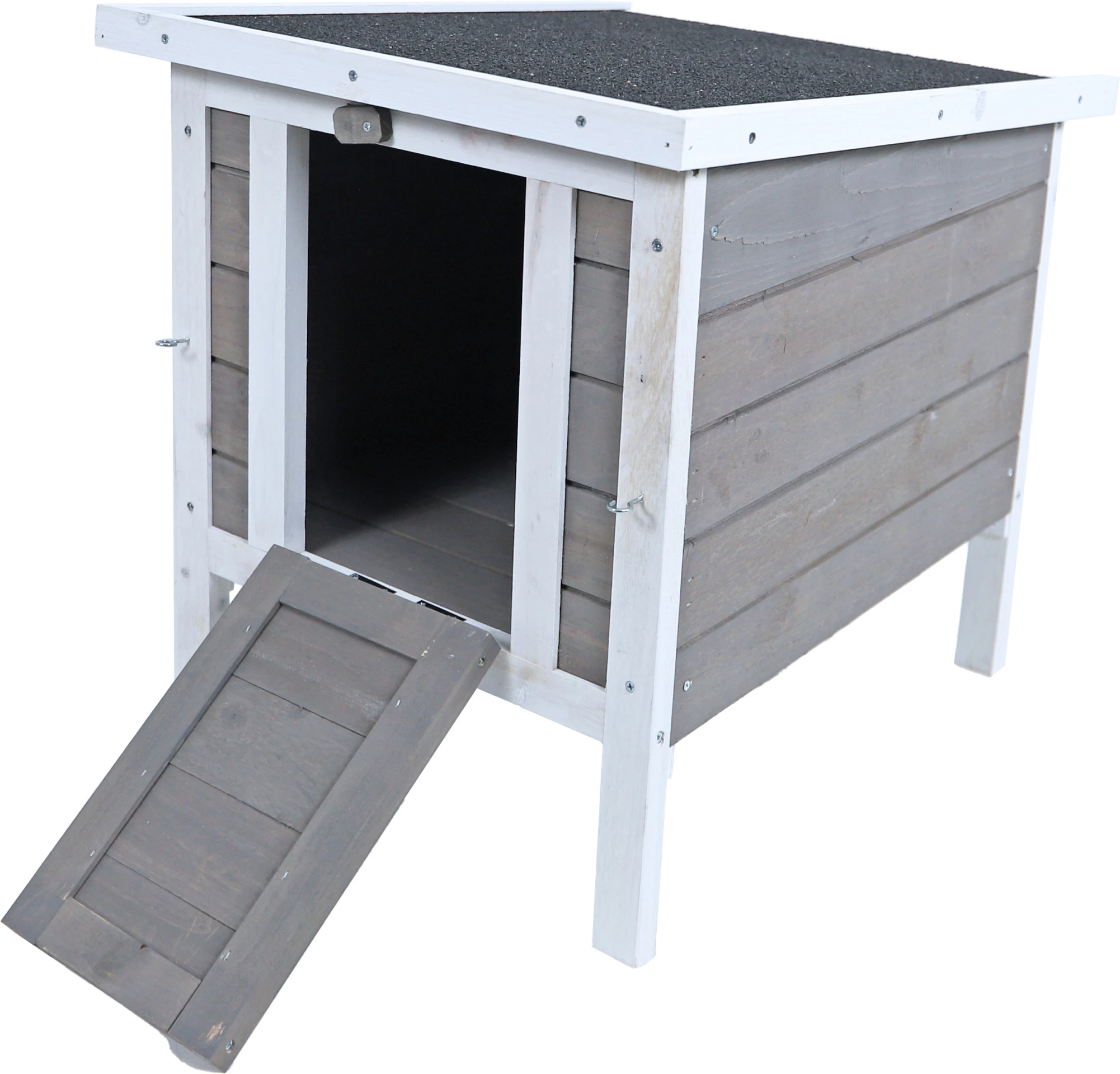 Wilt u van uw konijnen- of kippenren een volwaardig verbijf maken, dan is dit nachthok de ideale aanvulling. U plaatst het nachthok voor de opening van de ren met geopende deur. De deur laat u in de ren vallen en u maakt het nachthok vast aan de ren met de bijgeleverde haakjes. Ook kunt u het nachthok in de ren plaatsen. Let er dan wel op dat uw dier deze dan niet als opstapje gebruikt om uit de ren te ontsnappen. Met het nachthok biedt u het dier bescherming, een mogelijheid om te schuilen voor bijvoorbeeld de regen en een plaatsje om zichzelf terug te trekken. Afmetingen: 42x52x48 cm