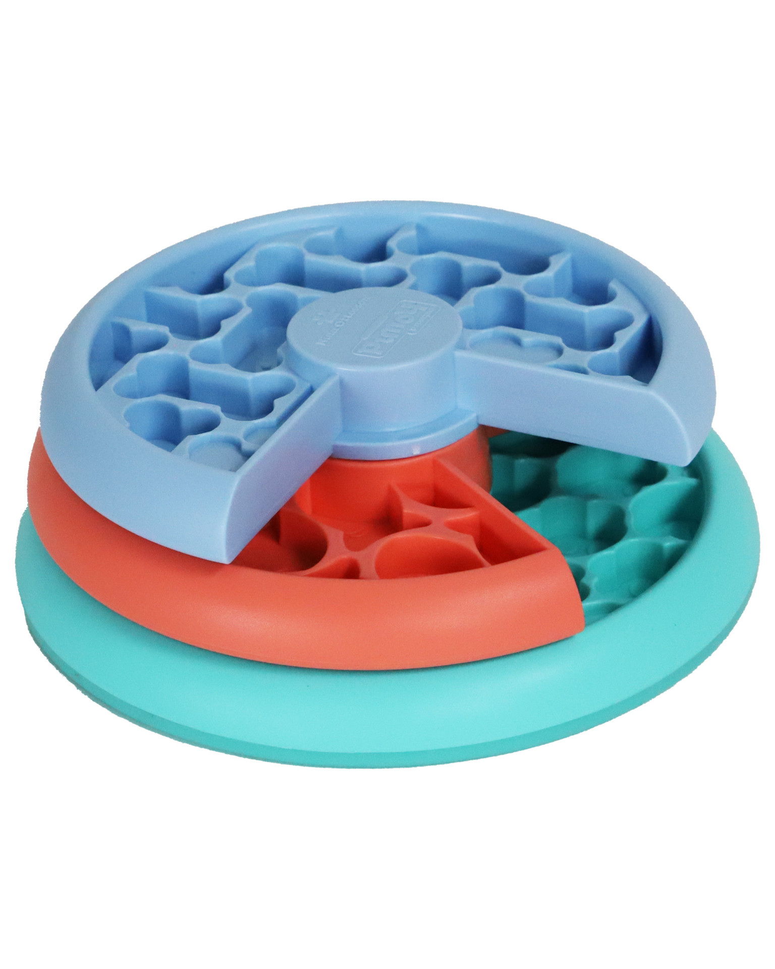 De verschillende lagen kunnen gevuld worden met droog voer, nat voer, rauw voer, snacks, pasta’s, yoghurt, pindakaas of wat dan ook de favoriete snack is van uw hond.