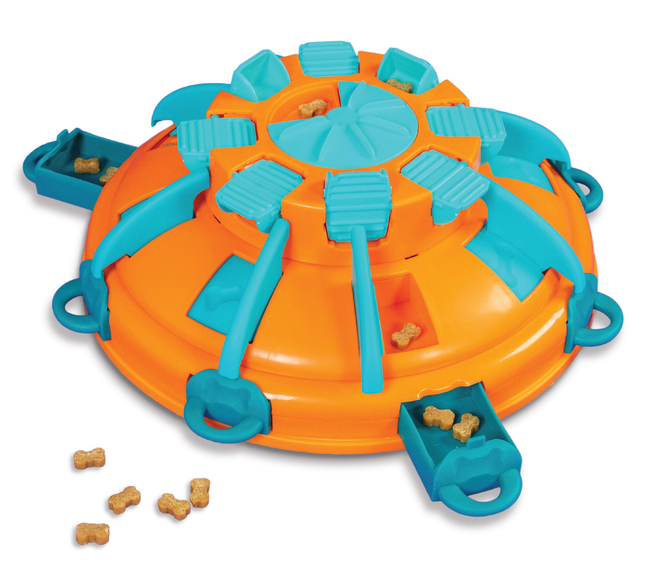 Je hond moet complexe actie’s uitvoeren die op volgorde moeten worden uigevoerd. Laat je hond bovenaan beginnen en zorg dat elke laag wordt vrijgegeven, zodat de verstopte snacks zichtbaar worden.