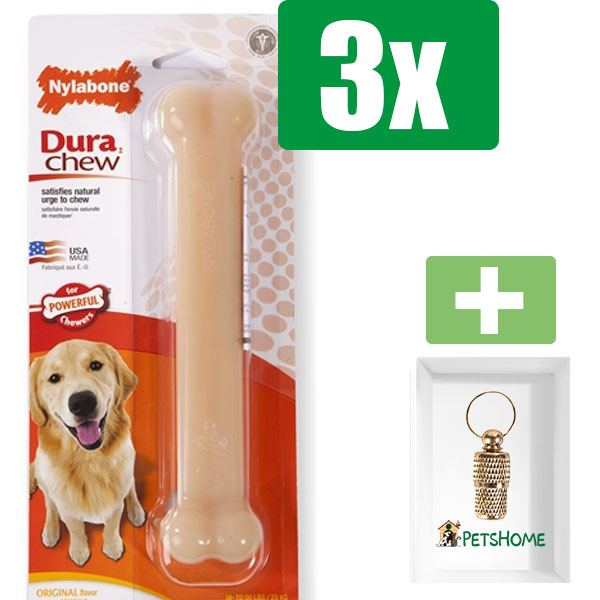 Nylabone Dura Chew Original Voor Harde Bijters – TOT 23 KG  – Kauwbot – Hondenspeelgoed – Kauwspeelgoed – 3 stuks – Inclusief Goudkleurige PetsHome Adreskoker