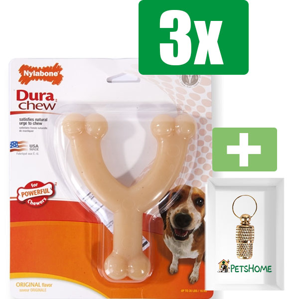 Nylabone Extreme Chew Wishbone Kipsmaak TOT 16 KG – Kauwbot – Hondenspeelgoed – Kauwspeelgoed – 3 stuks – Inclusief Goudkleurige PetsHome Adreskoker