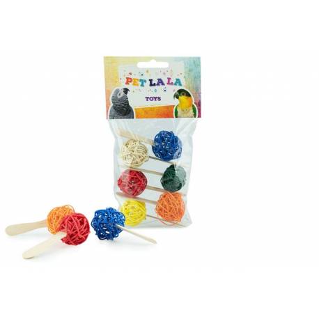 De Petlala PopsicleFoot Toy 6 pack zijn kleurrijke voetspeeltjes voor papegaaien. Voetspeelgoed zoals de Petlala Popsicle Foot Toy is erg belangrijk voor het verbeteren van de fysieke beweging en coördinatie van jouw kromsnavel. Door lekkere snacks te verstoppen in de lolly’s maak je een echte en nog aantrekkelijkere lolly van de Petlala PopsicleFoot Toy.
