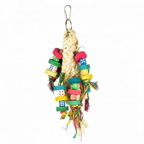 Afmetingen: 30 x 15 cm Materialen: Maiskolf huls, zeegras, hout en kunststof Geschikt voor middelgrote kromsnavels zoals: Caiques, Bonte Boertjes, Pyrrhura’s, Valkparkieten en Lori’s