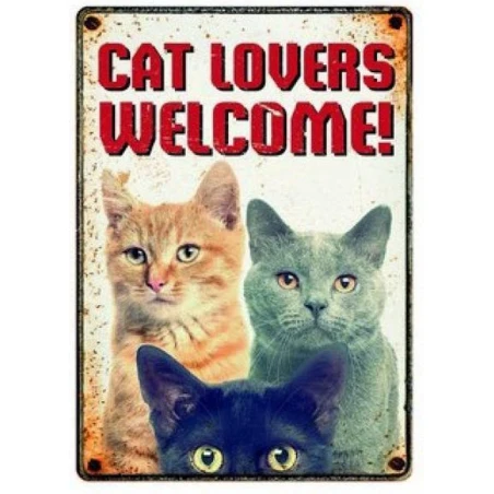 Plenty gifts waakbord blik cat lovers welcome (15X21 CM)