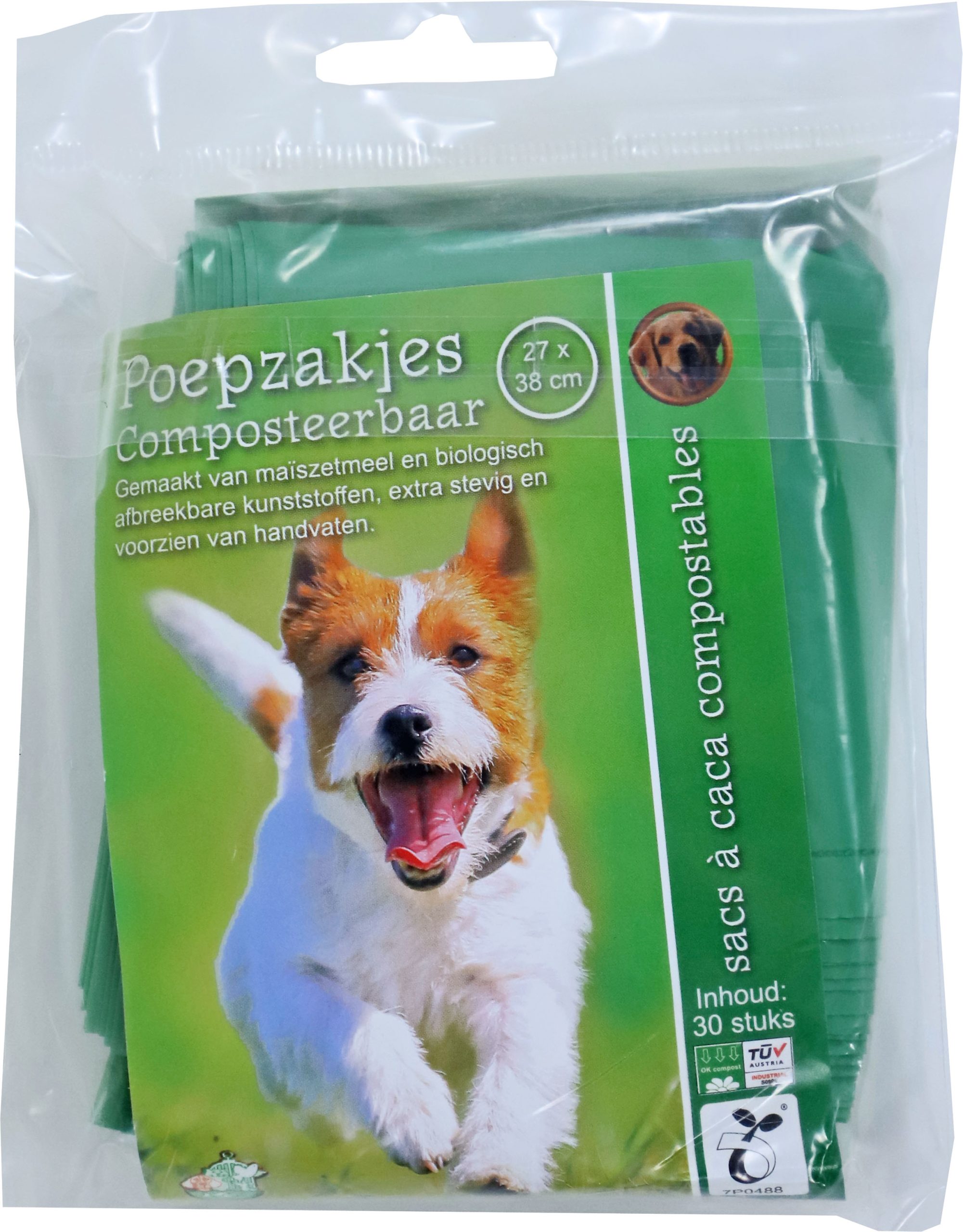De Boon composteerbare poepzakken met handvat in groen, verpakt per 30 stuks, zijn de milieuvriendelijke keuze voor elke hondenbezitter. Deze extra stevige, biologisch afbreekbare poepzakjes zijn perfect voor het schoon en hygiënisch deponeren van hondenpoep in de groene afvalbak. Met een afmeting van 27 × 38 cm bieden ze voldoende ruimte en zijn ze eenvoudig te gebruiken. Dankzij de handige handvatten zijn ze gemakkelijk vast te houden en te sluiten, waardoor je zonder zorgen kunt opruimen. Maak een positieve impact op het milieu met deze praktische en duurzame poepzakken!