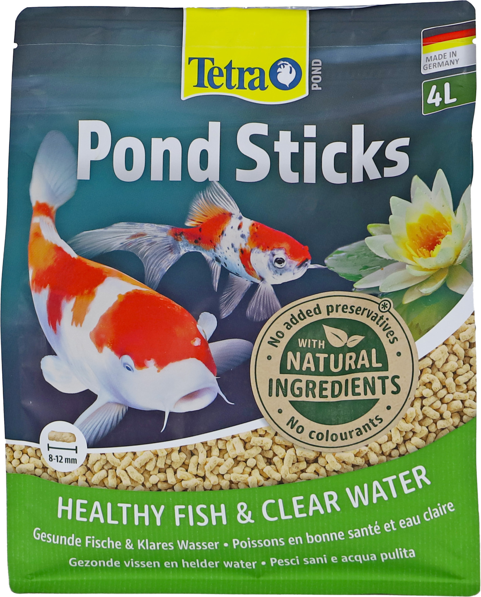 Hoofdvoeder voor alle tuinvijvervissen, in de vorm van drijvende sticks, voor een volwaardige en biologisch evenwichtige voeding.