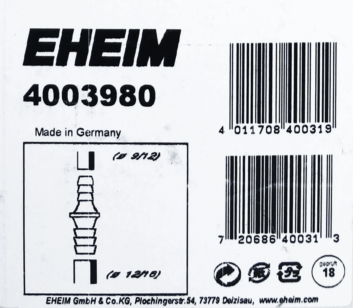 Eheim Reduceerstuk 9/12*12/16 Mm 400398