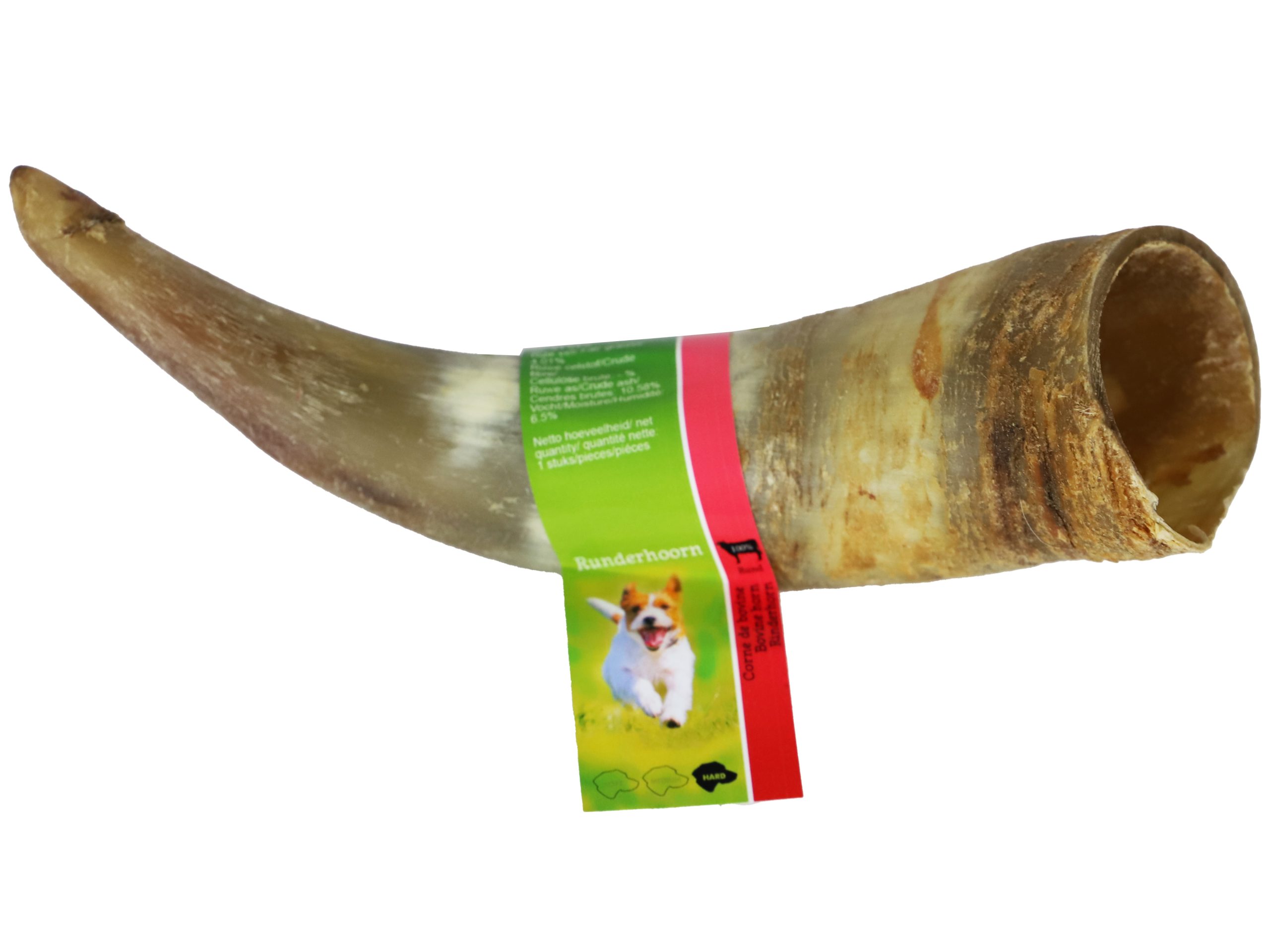 Deze 100% natuurlijke runderhoorn is een ideale kauwsnack voor uw trouwe viervoeter. Dankzij het feit dat de runderhoorn rijk is aan keratine, proteïne en calcium, is deze snack een gezonde snack voor uw hond. De hoorn is ook goed voor de tanden en het tandvlees van uw hond. Uiteraard is dit product niet voorzien van toevoegingsmiddelen of conserveermiddelen.