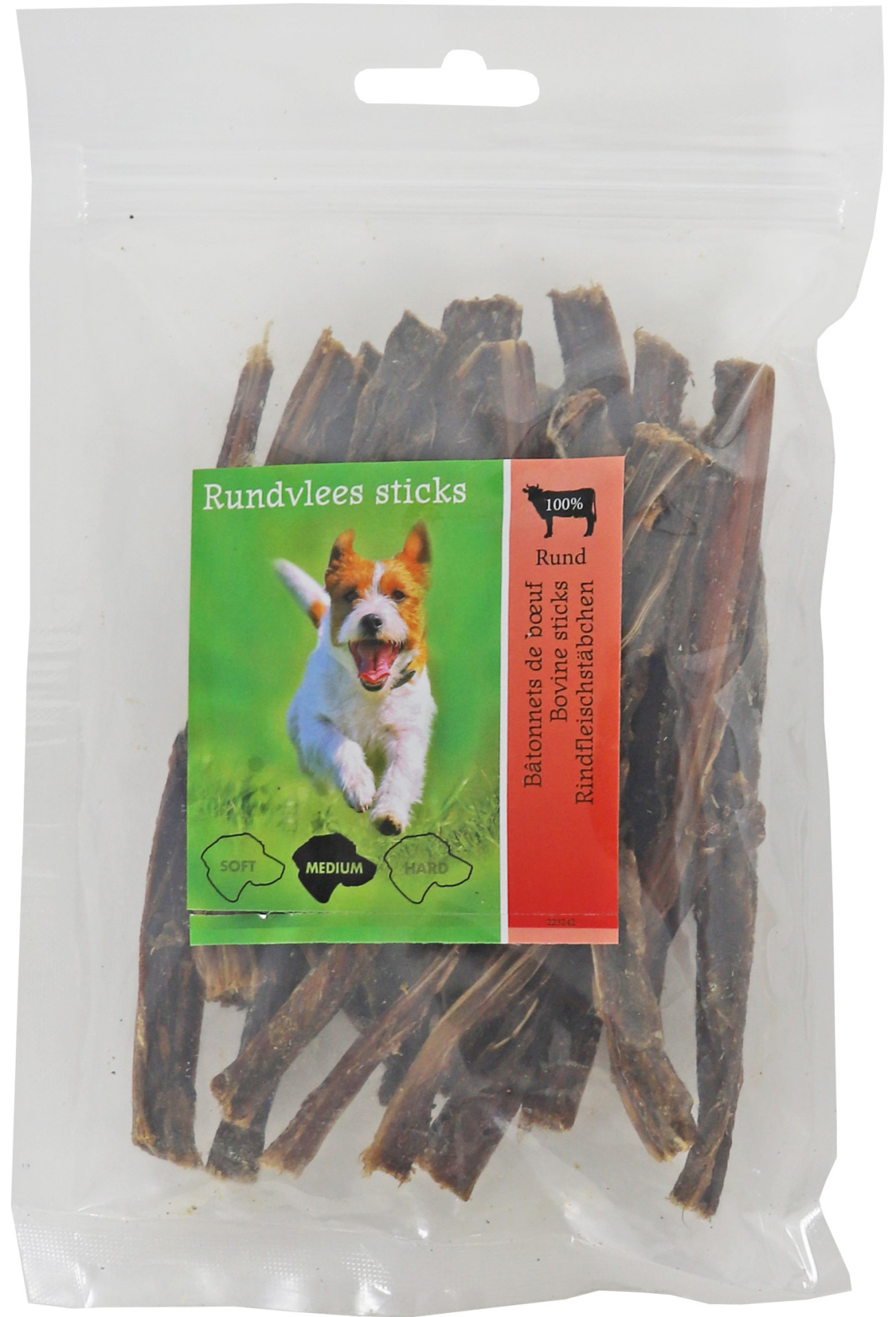 Deze rundvlees sticks zijn een heerlijke traktatie voor uw trouwe viervoeter. 100% natuurlijk, glutenvrij, premium kwaliteit en zonder toevoegingsmiddelen. Ook staat er op iedere verpakking een kauwlevel vermeld die de hardheid aangeeft van level 1 tot 3. Deze rundvlees sticks zijn kauwlevel 2 (middel) en daardoor geschikt voor honden met een gemiddelde kauwkracht. 100 gram per verpakking.