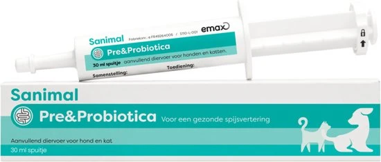 Sanimal pre&probiotica 30ml ondersteunt darm- & spijsverteringsondersteuning bij hond en/of kat en draagt bij aan dagelijkse verzorging.