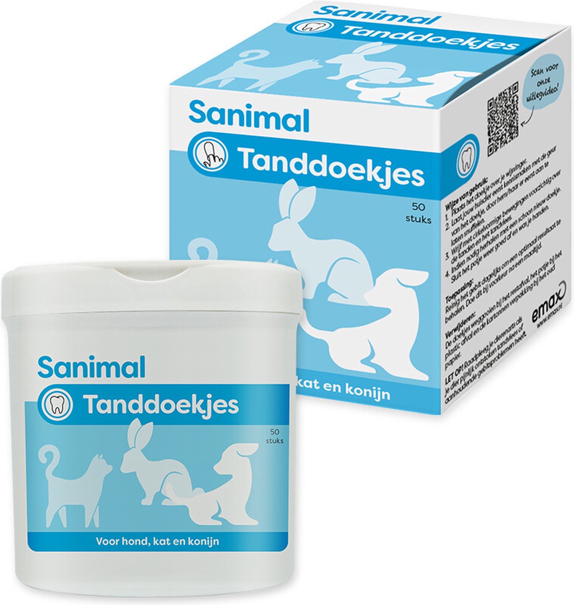 Sanimal tanddoekjes 50st ondersteunt gebitsverzorging bij hond en/of kat en draagt bij aan dagelijkse verzorging.