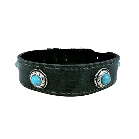 Sazzz Halsband Hond Boho Treasure Stone Vintage Leer Antraciet 32-39X3 Cm