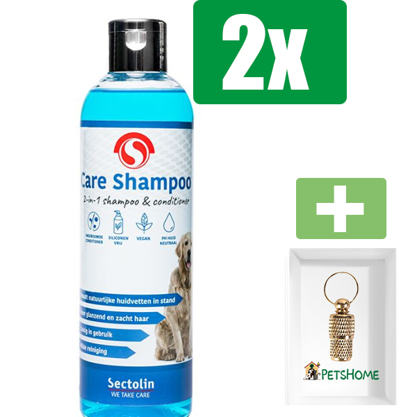 Sectolin Care Shampoo Hond 250 ml – 2 stuks- Inclusief PetsHome Goudkleurige Adreskoker