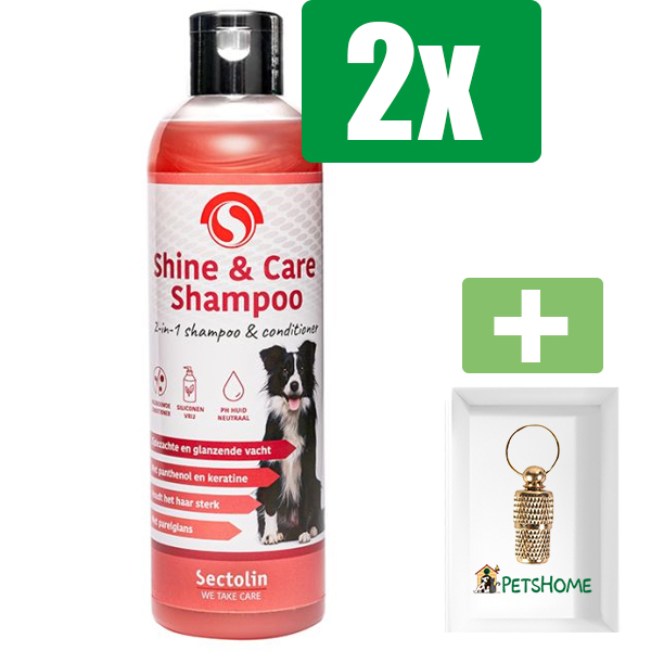 Sectolin Shine & Care Shampoo Hond 250 ml – 2 stuks- Inclusief PetsHome Goudkleurige Adreskoker