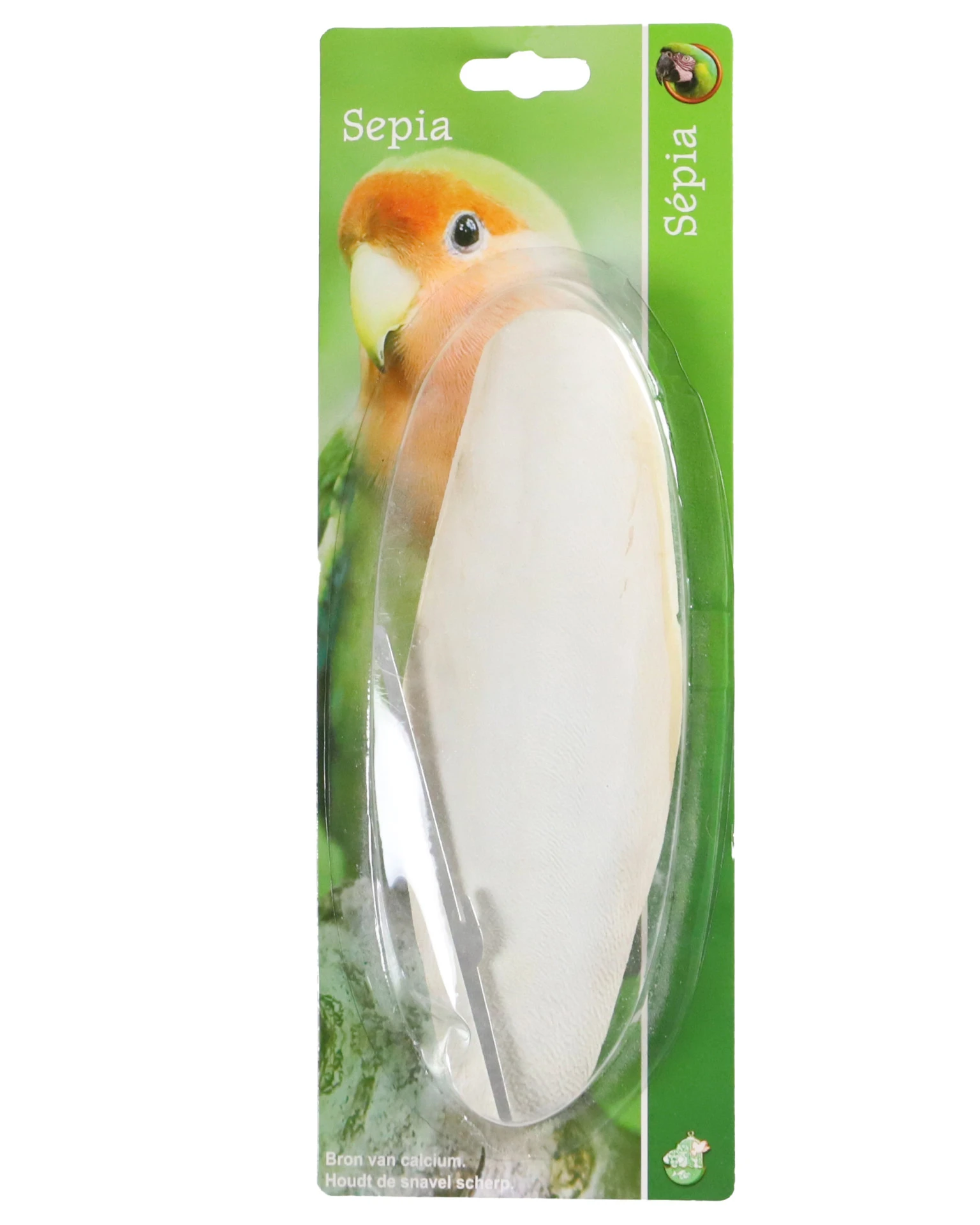 Sepia is de interne skeletschelp van een inktvis en vormt een natuurlijke bron van calcium voor vogels. Met zijn hoogte van 20cm is deze maat vooral geschikt voor grote parkieten of agapornide, daarnaast dient de sepia ook als slijpsteen voor de snavel en nagels van uw vogel. De meegeleverde klem zorgt ervoor dat de sepia makkelijk te plaatsen is in ieder verblijf.