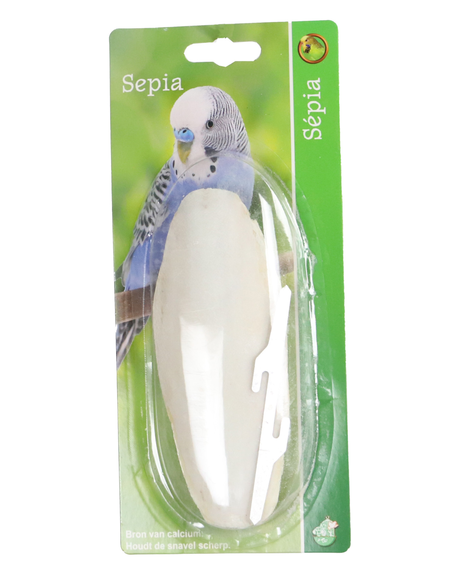 Sepia is de interne skeletschelp van een inktvis en vormt een natuurlijke bron van calcium voor vogels. Met zijn hoogte van 15cm is deze maat vooral geschikt voor grasparkieten,